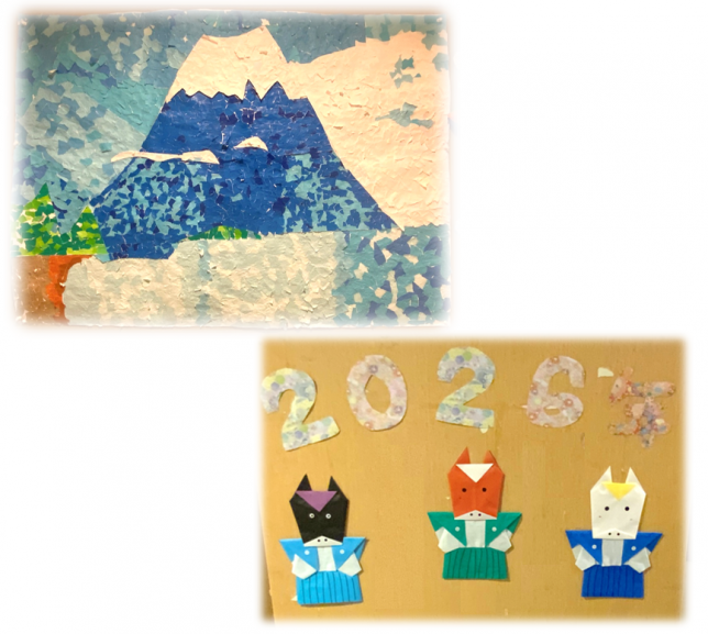 お正月に向けて、各ユニット、年末に鏡餅と共にお正月を盛り上げる飾り付けを行いました。