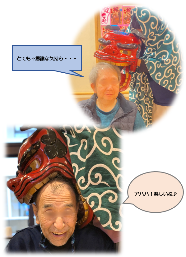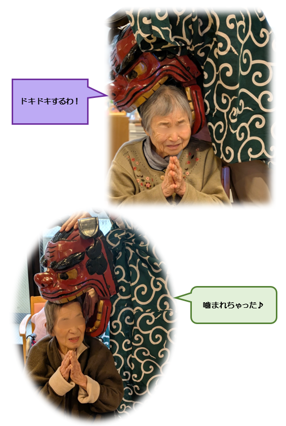 「邪気」が払うよう、獅子舞に頭を噛んでもらいました!