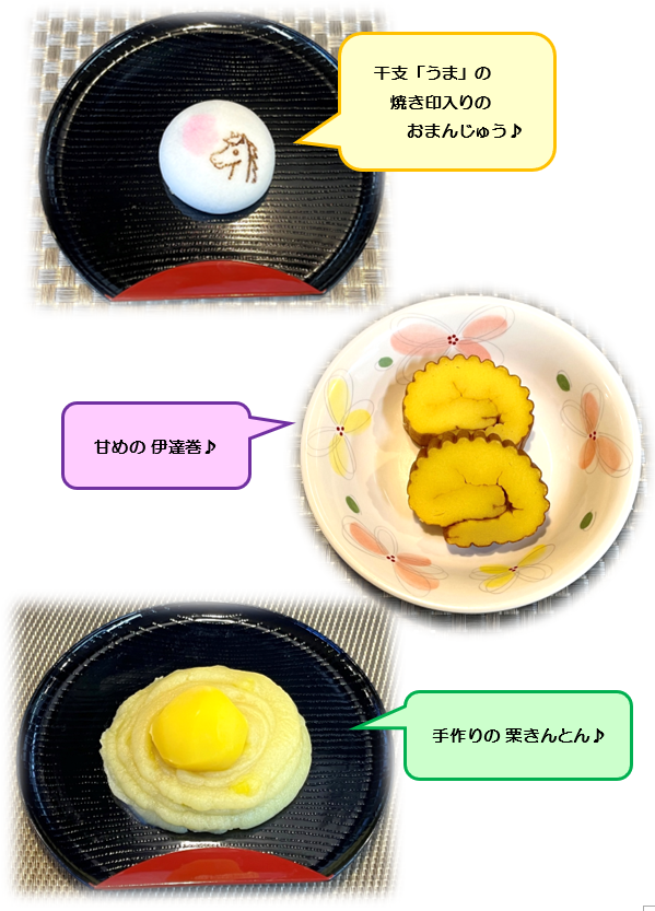 三が日は、お正月にちなんだおやつを提供しました!